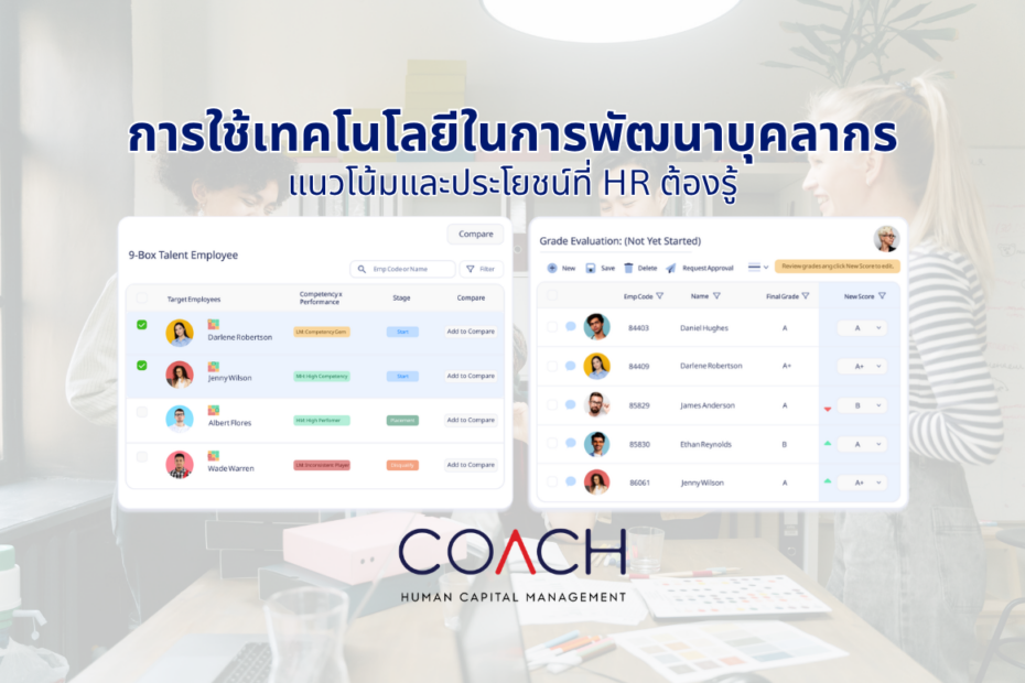 หากองค์กรต้องการยกระดับการพัฒนาบุคลากรด้วยเทคโนโลยีที่ทันสมัย COACH HCM ช่วยสนับสนุนระบบการพัฒนาทรัพยากรมนุษย์, ระบบฝึกอบรม และระบบประเมินพนักงานให้การบริหารและพัฒนาคนในองค์กรเป็นเรื่องที่มีประสิทธิภาพและตอบโจทย์การเติบโตในยุคดิจิทัล